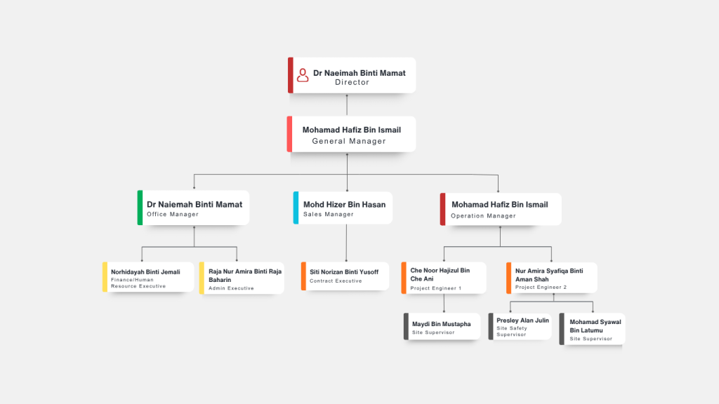 To be a pioneering organisation in both, construction and maintenance services, to develop talented personnel who can uphold a great workplace culture, and to be a competitive bumiputra organisation in an extraordinarily difficult business environment.